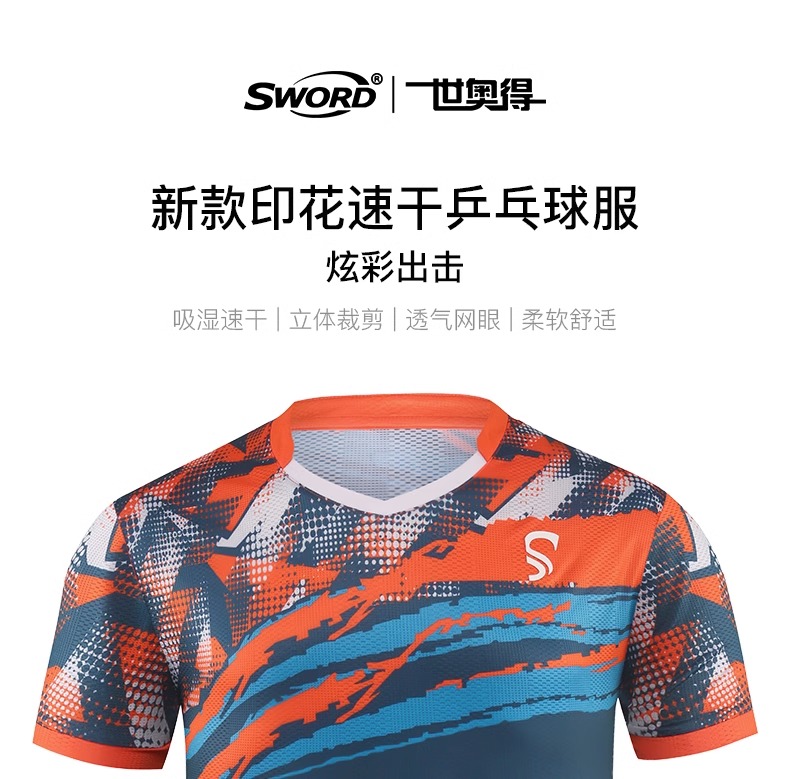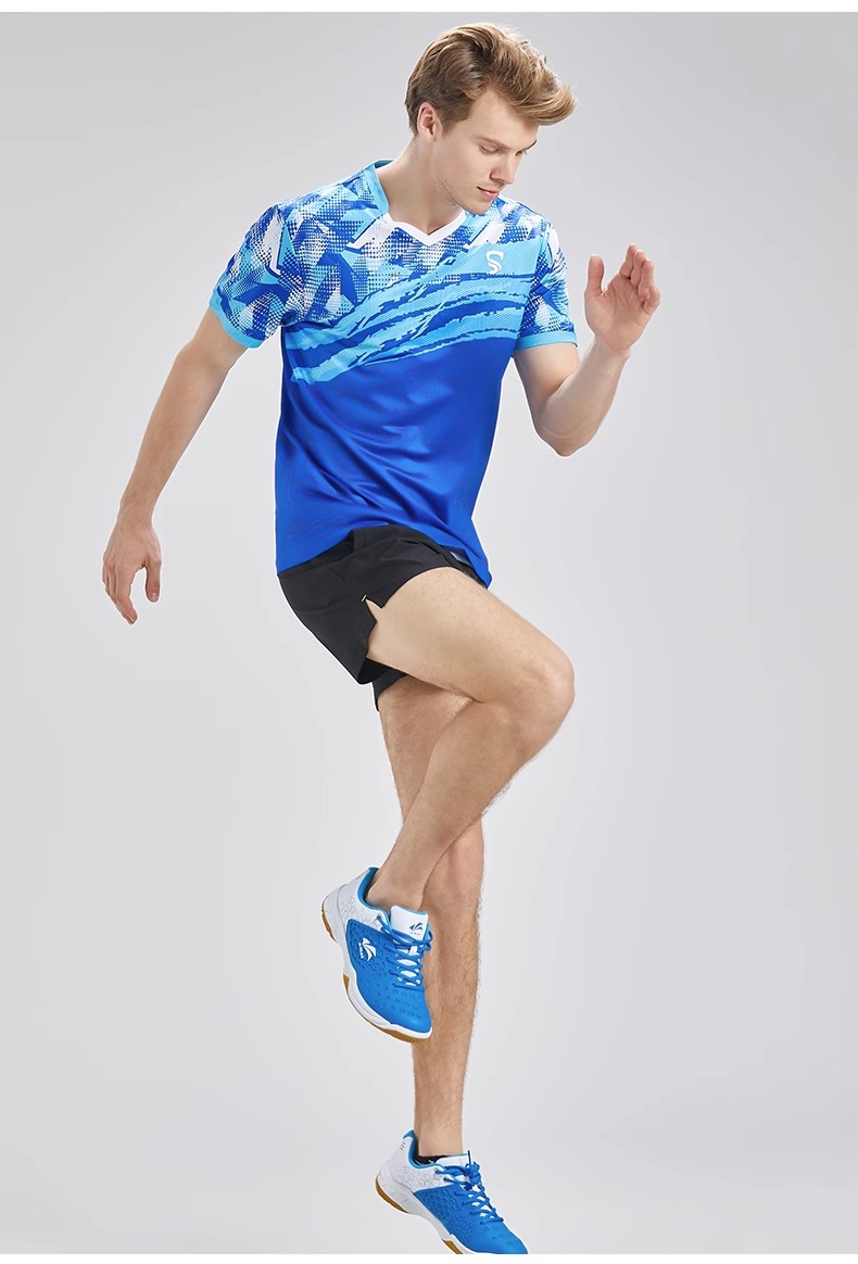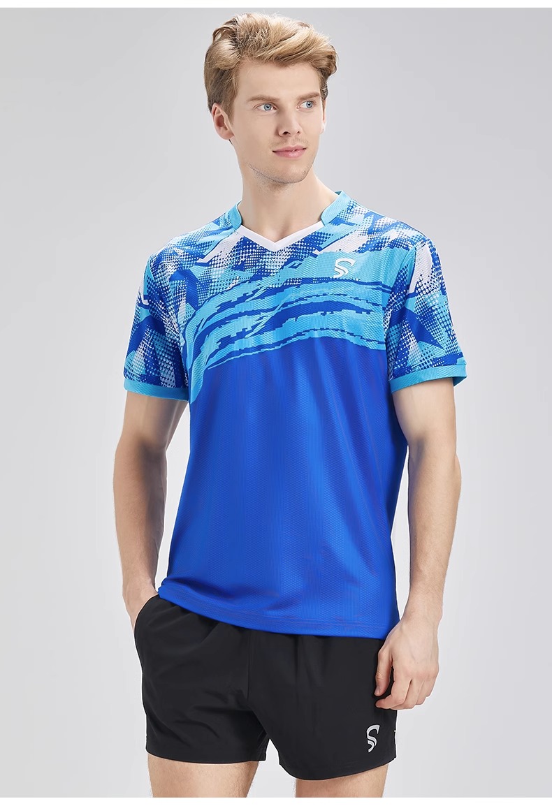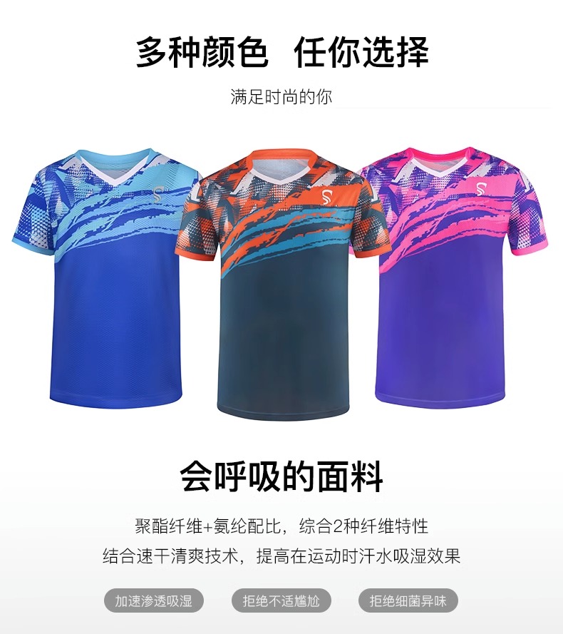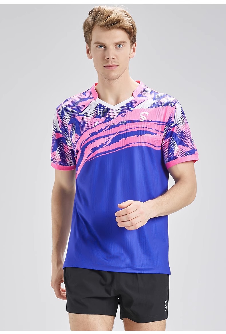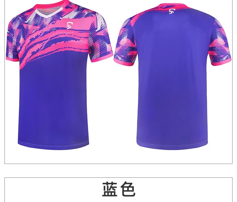 乒乓球比赛短袖蓝色/粉蓝
